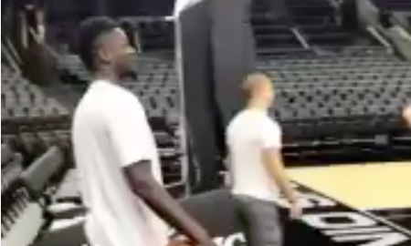 As you can see from the video clip below, D'Angelo Russell and Julius Randle were spooked by bats flying through the arena while they were getting some shots up.